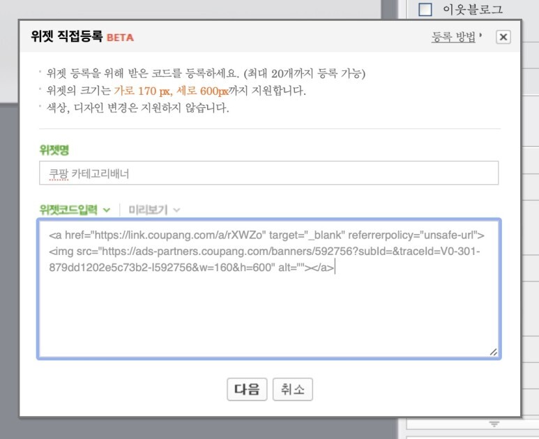 네이버블로그에 쿠팡파트너스 카테고리 배너다는 방법 본문