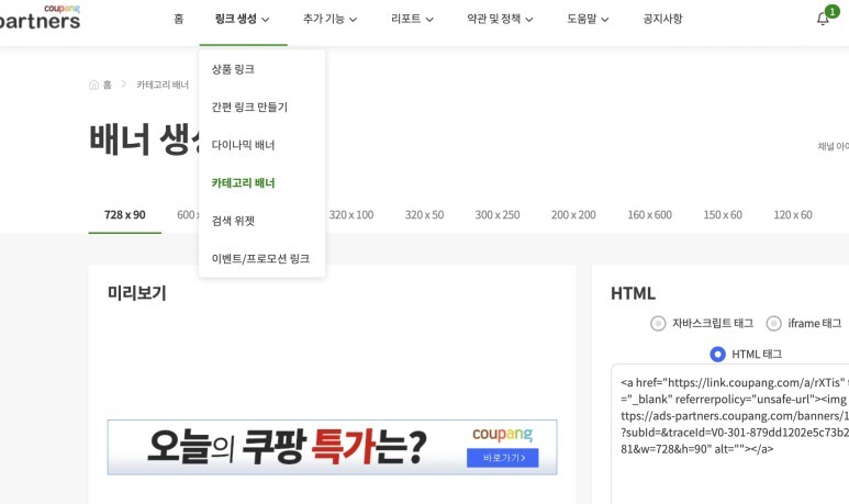 모두들 쿠팡 파트너스 카테고리 배너 적용해보셨나요?